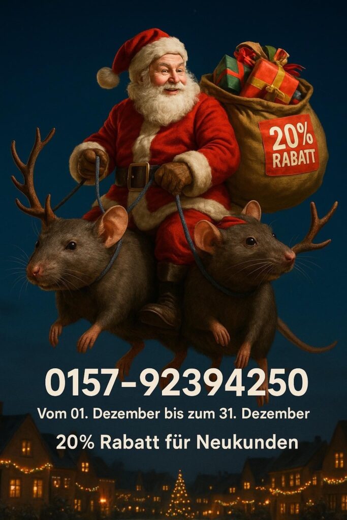 Die Fachkompetenz der FS-Kammerjäger Esslingen geht weit über die Maßnahmen gegen einzelne Mäuse hinaus. Nach nur wenigen Informationen von Ihnen vor Ort werden die ersten Optionen besprochen und an Ihre spezielle Situation angepasst. Eine Liste der erforderlichen Schädlingsbekämpfungsmaßnahmen und deren Kosten gibt Ihnen Klarheit über das Verfahren. Wenn Sie nicht sicher sind, um welche Art von Schädlingen es sich handelt, können Sie uns jederzeit Fotos schicken, um uns bei der Identifizierung des Schädlings zu helfen. Senden Sie diese einfach per WhatsApp oder E-Mail direkt an unsere Kammerjäger in Esslingen, um eine schnelle Antwort und eine Preisliste zu erhalten. Zögern Sie nicht, uns bei folgenden Schädlingsbefällen zu kontaktieren!